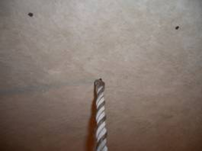3. Im dritten Schritt bohre alle Löcher im Mauerwerk bzw. Balken. Die Löcher sollten ausreichend tief gebohrt werden. In der Regel reichen acht bis neun Zentimeter aus. Der Durchmesser des Bohrers muss der Dübelgröße entsprechen. Wenn die Dübel 8 mm groß sind, dann sollte der Bohrer dementsprechend auch 8 mm groß sein. Auf allen Dübeln und Bohrern findet sich ihre Größe. Verwenden Sie beim Bohren einen Steinbohrer. Je nach Festigkeit der Befestigungsstelle ist ein Vorbohren mit einem kleineren Bohrer erforderlich. Bei einer Befestigung an einem Balken sollten die Löcher immer mit einem kleineren Bohrer vorgebohrt werden.